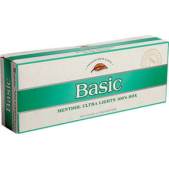 Basic Menthol Ultra Lights 100's Silver Pack Box cigs 10 cartons