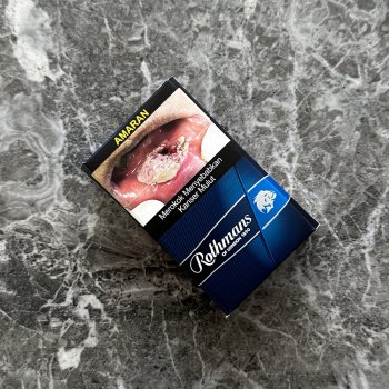 Rothmans Blue cigarettes. Each cigarette contains 7 mg of tar and 0.7 mg of nicotine. The price $200 is for 10 cartons quantities. |